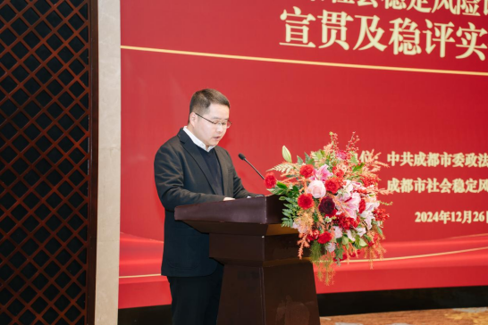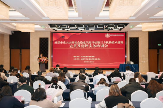 為做好新形勢(shì)下重大決策社會(huì)穩(wěn)定風(fēng)險(xiǎn)評(píng)估工作,進(jìn)一步提升全市第三方機(jī)構(gòu)社會(huì)穩(wěn)定風(fēng)險(xiǎn)評(píng)估工作質(zhì)效,成都市社會(huì)穩(wěn)定風(fēng)險(xiǎn)評(píng)估協(xié)會(huì)于2024年12月26日組織開展《成都市重大決策社會(huì)穩(wěn)定風(fēng)險(xiǎn)評(píng)估第三方機(jī)構(gòu)技術(shù)規(guī)程(2024年版)》(下稱“《技術(shù)規(guī)程》”)宣貫及穩(wěn)評(píng)實(shí)務(wù)培訓(xùn)會(huì)。市委政法委有關(guān)負(fù)責(zé)同志、協(xié)會(huì)領(lǐng)導(dǎo)及會(huì)員單位穩(wěn)評(píng)從業(yè)人員共計(jì)180余人參訓(xùn)。