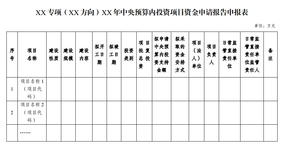 二、在附表中,應(yīng)當(dāng)明確每個項(xiàng)目的中央預(yù)算內(nèi)投資支持金額,并在“備注”欄中注明“本次批復(fù)資金申請報(bào)告”。