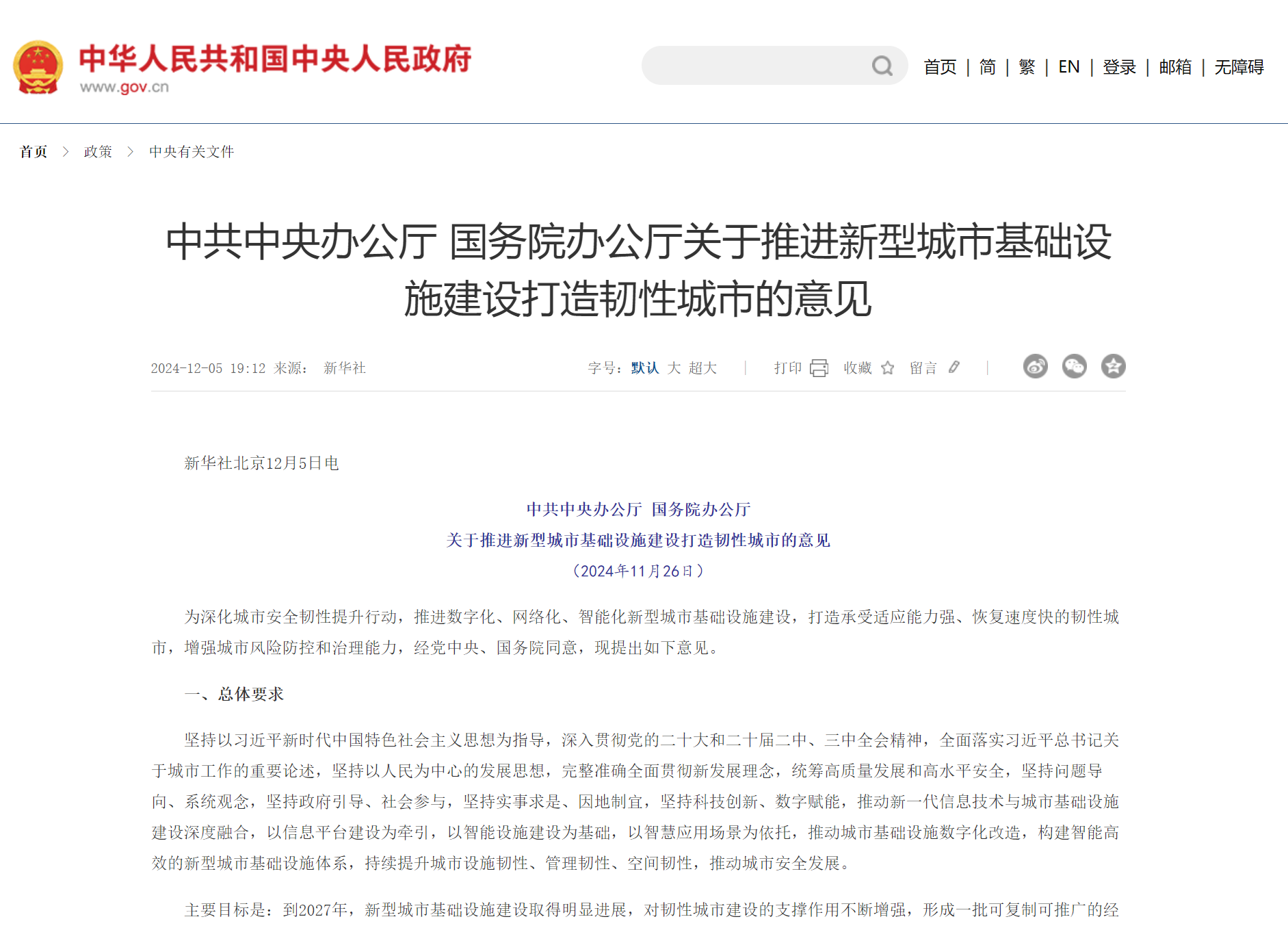 為深化城市安全韌性提升行動,推進(jìn)數(shù)字化、網(wǎng)絡(luò)化、智能化新型城市基礎(chǔ)設(shè)施建設(shè),打造承受適應(yīng)能力強、恢復(fù)速度快的韌性城市,增強城市風(fēng)險防控和治理能力,經(jīng)黨中央、國務(wù)院同意,現(xiàn)提出如下意見。