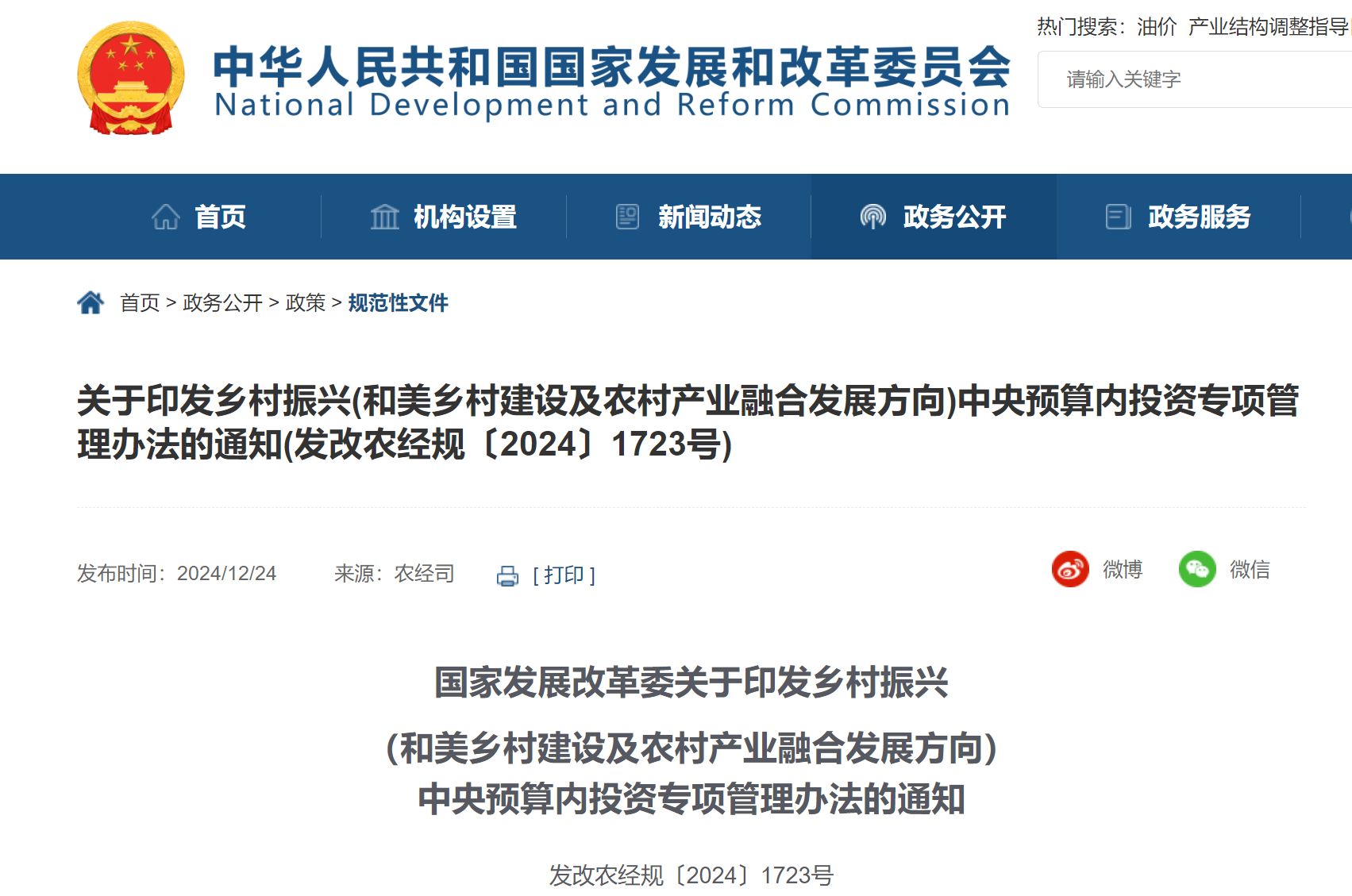 為貫徹落實黨中央、國務(wù)院決策部署,進(jìn)一步規(guī)范鄉(xiāng)村振興中央預(yù)算內(nèi)投資專項管理,根據(jù)《政府投資條例》和中央預(yù)算內(nèi)投資管理的相關(guān)規(guī)定,我們制定了《鄉(xiāng)村振興(和美鄉(xiāng)村建設(shè)及農(nóng)村產(chǎn)業(yè)融合發(fā)展方向)中央預(yù)算內(nèi)投資專項管理辦法》。