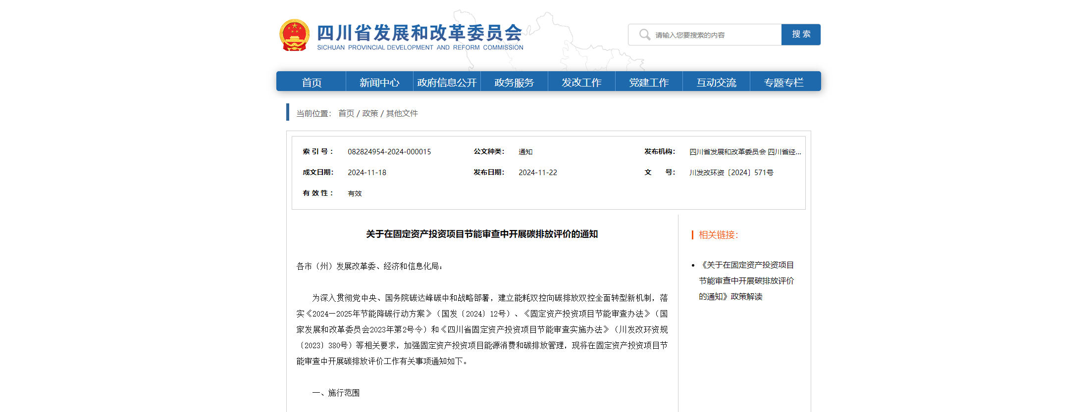 關(guān)于在固定資產(chǎn)投資項目節(jié)能審查中開展碳排放評價的通知 各市(州)發(fā)展改革委、經(jīng)濟(jì)和信息化局:為深入貫徹黨中央、國務(wù)院碳達(dá)峰碳中和戰(zhàn)略部署,建立能耗雙控向碳排放雙控全面轉(zhuǎn)型新機制,落實《2024—2025年節(jié)能降碳行動方案》(國發(fā)〔2024〕12號)、《固定資產(chǎn)投資項目節(jié)能審查辦法》(國家發(fā)展和改革委員會2023年第2號令)和《四川省固定資產(chǎn)投資項目節(jié)能審查實施辦法》(川發(fā)改環(huán)...
